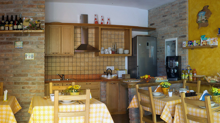 La colazione è in stile “casalingo” e prevede frutta e prodotti da forno artigianali del territorio, pane fresco, cereali, burro, marmellate, yogurt e prodotti salati come uova, affettati e formaggi per soddisfare le richieste degli ospiti internazionali.