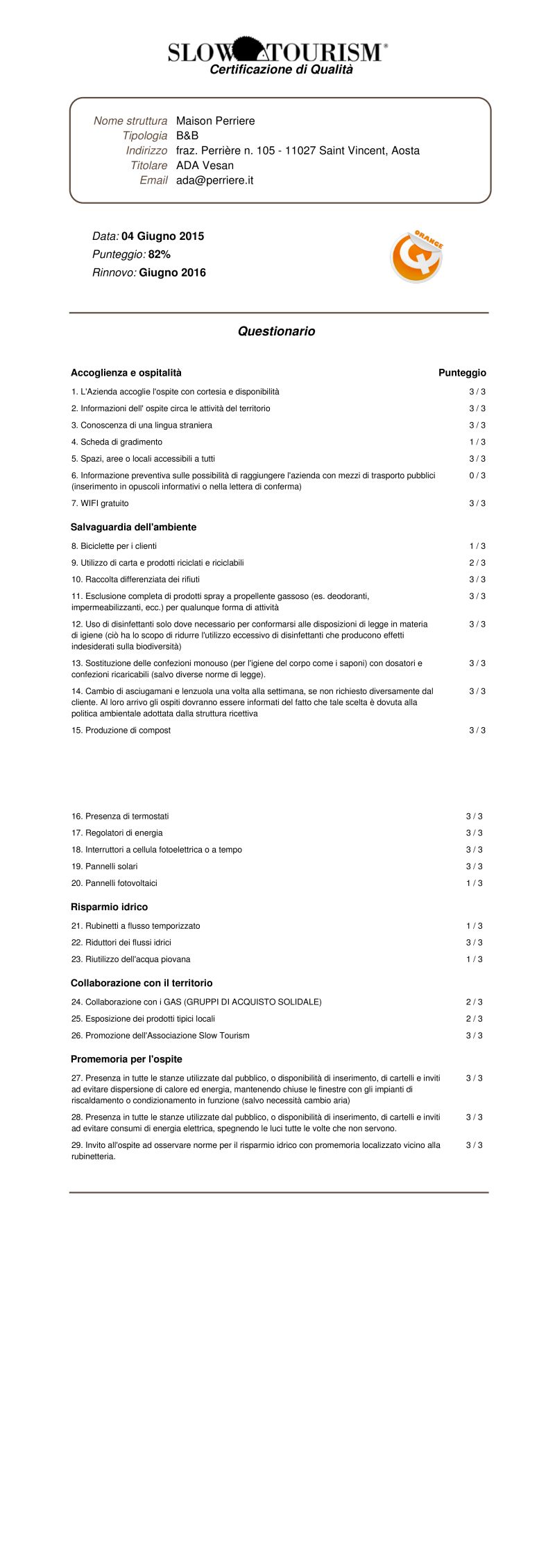 Per i possessori del Passaporto Slow Tourism è applicato lo sconto del 10%. Come omaggio di benvenuto è previsto un aperitivo.